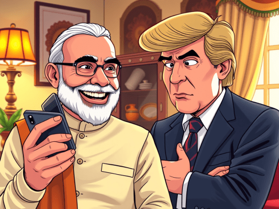 In this humorous dialogue between Narendra Modi and Donald Trump, Modi congratulates Trump and jokes about supporting him through religious rituals. They bond over their political slogans while discussing presidential pardons and Modi’s cultural practices, including cleansing sins in the Ganga River. The conversation highlights their friendship with playful banter.